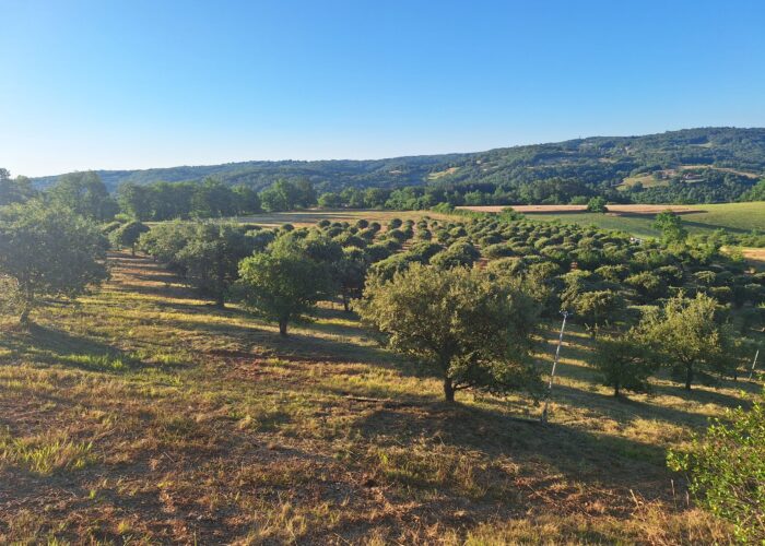 Depuis plus de 20 ans, nous cultivons la truffe noire du Périgord (Tuber Melanosporum) sur notre propriété de Saint-Pompon. Notre truffière s’étend sur plusieurs hectares plantés de chênes verts et chênes pubescents mycorhizés.